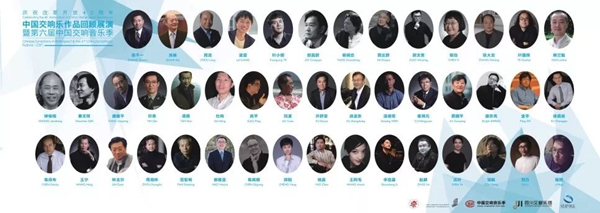 当晚到场的各位成都站的作曲家们、四川交响乐团领导和中国音乐家协会主席叶小纲合影