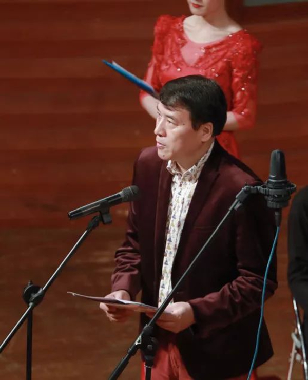 作曲家郭文景上台接受观众的献花并向观众致谢
